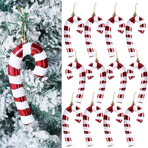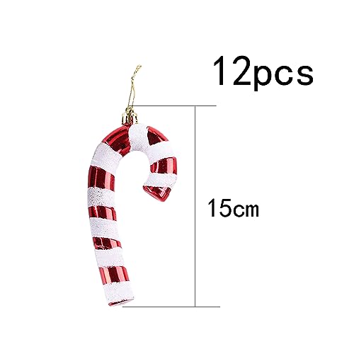 YIEUR 12 ciondoli a forma di bastoncino di zucchero, in plastica, 15 cm, con brillantini, per albero di Natale (rosso e bianco)