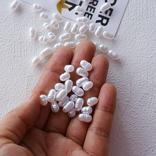 YIEUR 200 perline ovali in plastica, 8 mm, perline di cera bianche con foro, 30 g, per fai da te e gioielli (ovale)