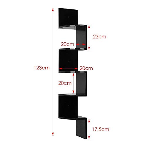 YIFAA - Scaffale angolare a 5 Ripiani, da Parete, per CD e Dvd