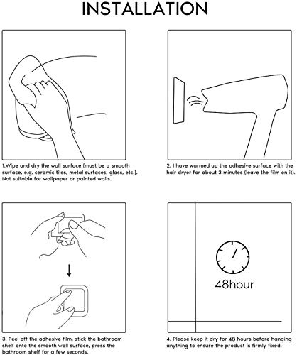 Suggerimento: è necessario pulire e asciugare la superficie prima di incollare, attendere 48 ore prima di appendere qualsiasi cosa, il ripiano per doccia autoadesivo non è adatto per superfici irregolari come pareti dipinte o carta da parati.