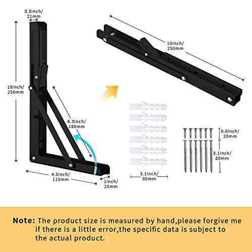 YIHATA Viesap Staffa Pieghevole 250mm, 2 Pezzi Mensola Pieghevole, Supporto Da Parete In Metallo Nero, Supporto Tavolo Staffe Carico Massimo 100 KG, Per Garage, Cucina, Camera Da Letto Salvaspazio