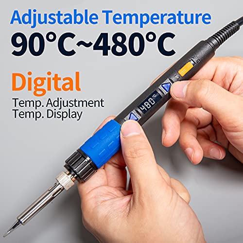 È possibile scegliere un intervallo di temperatura da 90°C a 480°C per il lavoro, il programma di stabilizzazione della temperatura PID integrato mantiene la temperatura costante, per una saldatura sempre fluida. I parametri vengono mostrati su un display LED digitale sul saldatore, per una facile consultazione.