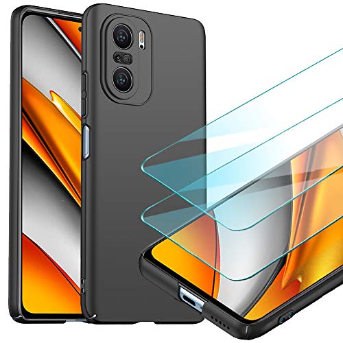 YIIWAY Compatibile con Cover Xiaomi Poco F3 + [2 Pezzi] Pellicola Vetro Temperato, Nero Ultra Sottile Custodia Cover Case Compatibile con Xiaomi Poco F3 YW42185