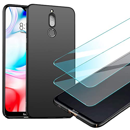 YIIWAY Cover Xiaomi Redmi 8 + [2 Pezzi] Pellicola Vetro Temperato, Nero Ultra Sottile Custodia Cover Protettiva Case per Xiaomi Redmi 8 YW41052