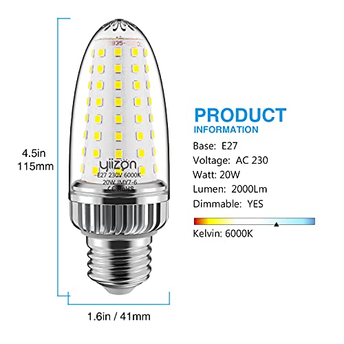 Yiizon LED Lampadina Mais 20W, 6000K Bianco Freddo, 2000LM, E27 Vite Edison Grande, 150W Lampadine Incandescenza Equivalenti, Non Dimmerabile, 4 Pezzi