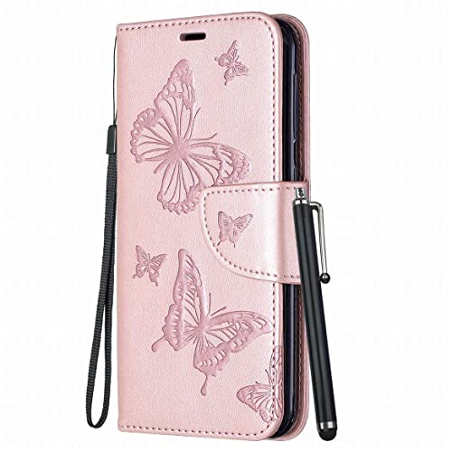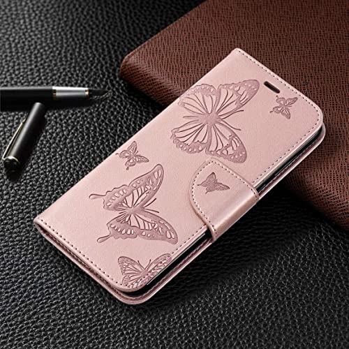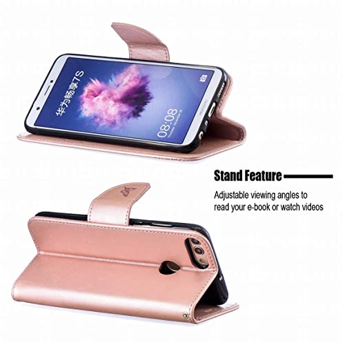 Yiizy Cover per Huawei P Smart Fig-LX1, farfalla 3D Portafoglio Custodia in pelle protettiva magnetica in silicone TPU Cover Huawei Enjoy 7S con slot carte, funzione di supporto (oro rosa)