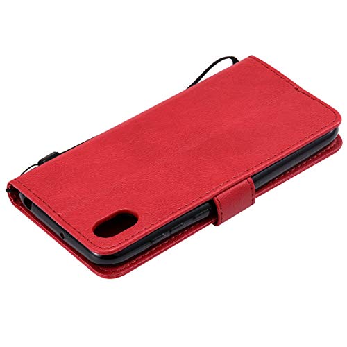 Yiizy Custodie per Huawei Y5 (2019) AMN-LX9 Cover, Semplice Stile PU Pelle Portafoglio Cover per Huawei Y5 (2019) ProSilicone TPU Morbido Carte, Funzione Stand, Magnetica Protettivo (Rosso)