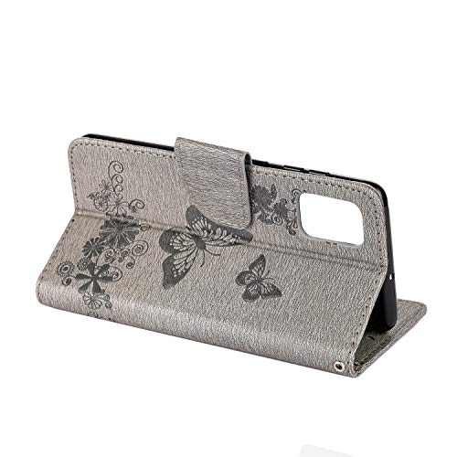 Yiizy Custodie per Samsung Galaxy A51 Cover, Farfalla Stile PU Pelle Portafoglio Cover per Galaxy A51 ProSilicone TPU Morbido Carte, Funzione Stand, Magnetica Protettivo (Grigio)