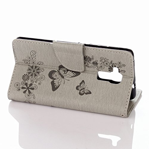 Yiizy Huawei Honor 5c / Honor 7 Lite/Huawei GT3 Custodia Cover, Farfalla Fiore Sottile Flip Portafoglio PU Pelle Cuoio Copertura Schede Cavalletto Stile Libro Protettivo Borsa (Grigio)