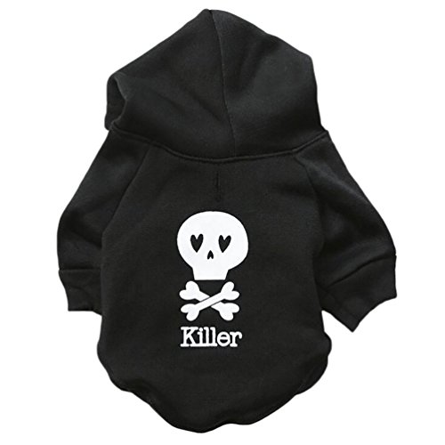YiJee Animale Domestico Vestiti Cane Felpa con Cappuccio Manica Corta Modello del Cranio Nero L