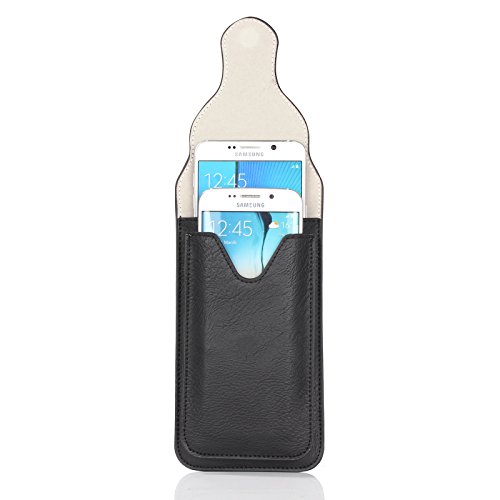 YiJee, custodia protettiva per smartphone in ecopelle PU con doppia tasca e moschettone, adatta ad iPhone e smartphone da 5,5 pollici, Pelle sintetica PU, Black, 16*10*2.5cm