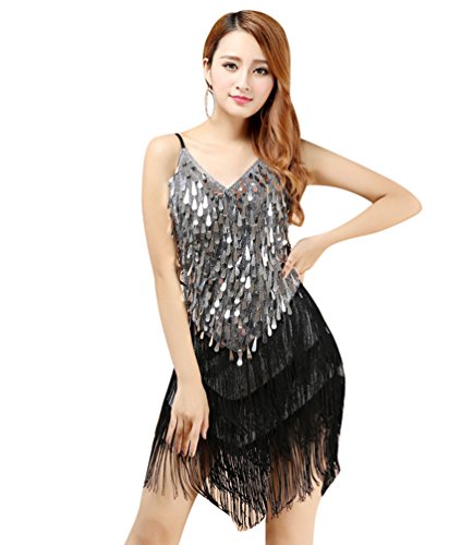 YiJee Donna Abiti da Competizione Ballo Abito Tango Rumba Valzer Salsa Paillettes Nappe Gonne