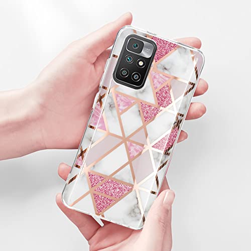 YiKaDa - Cover Compatibile con Xiaomi Redmi 10 (Non Redmi Note 10) + [2 Pack] Pellicola Protettiva in Vetro Temperato, Custodia Marmo Morbida in Silicone TPU - Rosa
