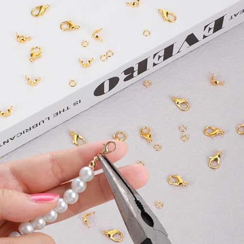 ★★【Il set include: 30 chiusure a moschettone in argento, 30 chiusure a moschettone dorate, 100 anelli in argento aperti, 100 anelli aperti e curvi, 100 punte di perle argentate, 100 punte di perle dorate, 1 pinza a becco lungo, 1 apriscatole e 1 pinzetta, quantità sufficiente per creare gioielli più comodamente.