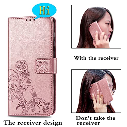 YIKLA Cover per Realme C21, Retro Flowers Design Pattern Custodia Folio, Premium PU/TPU Pelle Flip Wallet Cover, con [Slot per Schede] [Chiusura Magnetica] - Oro Rosa