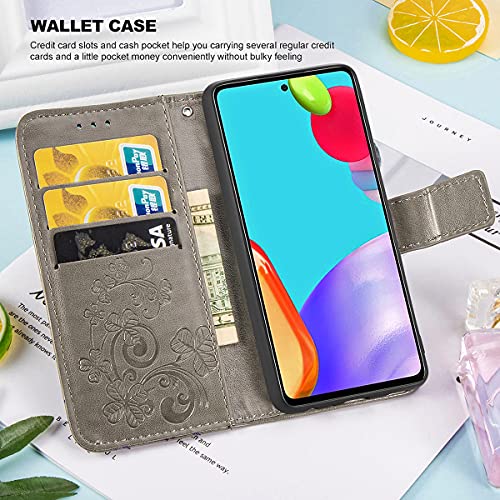 YIKLA Cover per Realme C21, Retro Flowers Design Pattern Custodia Folio, Premium PU/TPU Pelle Flip Wallet Cover, con [Slot per Schede] [Chiusura Magnetica] - Grigio