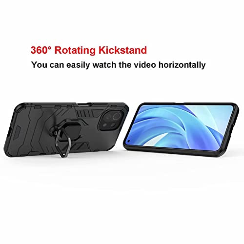 YIKLA Custodia per Xiaomi Mi 11 Lite, TPU/PC Antiurto Custodie con 360° Regolabile Anello Magnetica Supporto, Armor Bumper Protezione Case Caso - Nero