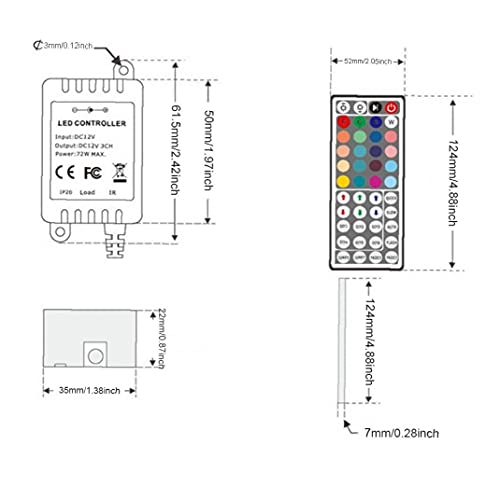 Yililay Led Adattatore regolatore chiaro, 44 ??chiavi luci LED RGB Remote Control Box per 2pcs striscia LED RGB