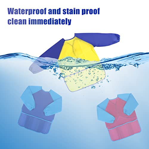YiliYa 3 Pezzi Grembiule da Pittura Bambini, Grembiulino Impermeabile Scuola Maniche Lunghe con 3 Tasche per Bambini 3-8 Anni, Grembiule da Gioco - Pittura, Cucina, Scuola, casa (Rosa/Giallo/Blu)