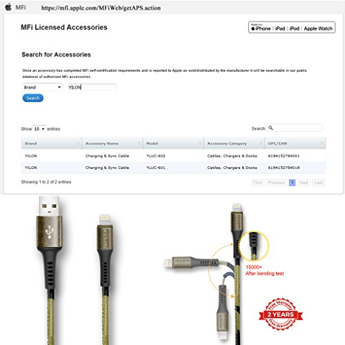 SE, 5S, 5C, 5, iPad Air, iPad mini, iPad, iPad Pro, iPod nano, iPod Touch, ecc. Contenuto della confezione: cavi Yilon, servizio clienti veloce e facile da raggiungere, supporto e-mail 24 ore su 24, 7 giorni su 7.