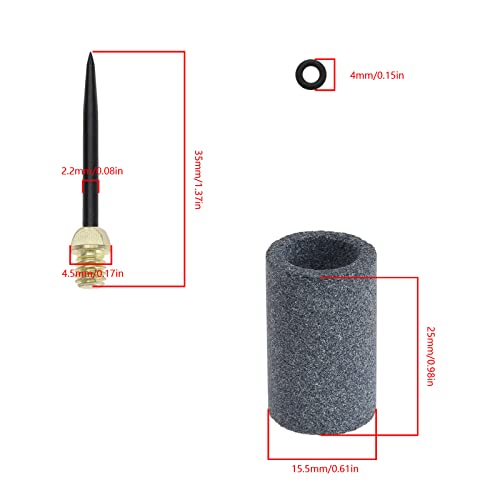 Contenuto della confezione: 18 aghi duri da 4,5 mm da 2 BA, 50 anelli in gomma per freccette e 2 pietre per molatura per freccette.