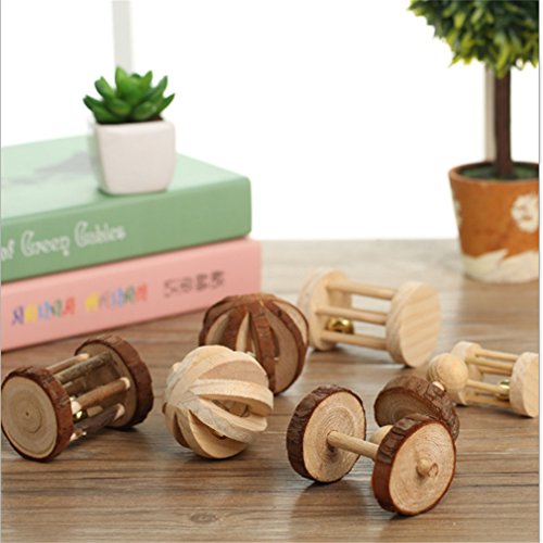 Yinew Little Pets masticare giocattoli in legno di pino manubri monociclo Bell roller Chew giocattolo per gatto coniglio criceto ratto, Legno, Small Dumbbell, 6#