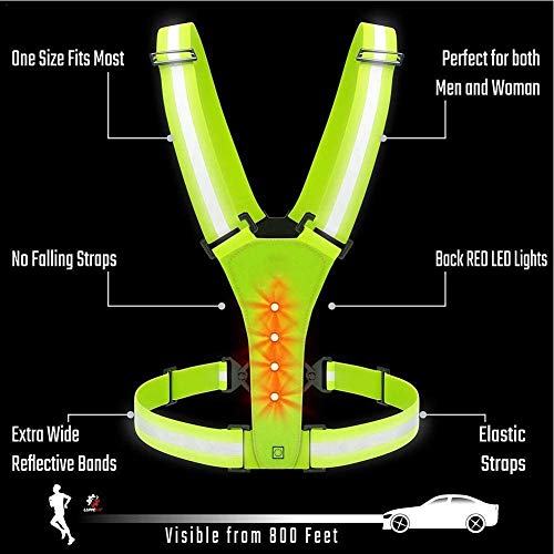 YINFENG Gilet Catarifrangente Gilet Riflettente Nastri Riflettenti - Gilet Regolabile con LED Riflettente per Ciclismo Notturno per La Corsa, Il Ciclismo, Passeggiate Etc