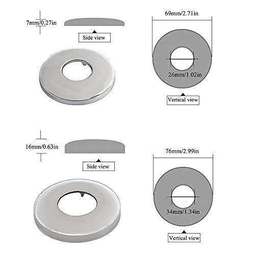 ⚙️【Buone Prestazioni】 Rosette a collare in acciaio cromato adotta il processo di cromatura, la superficie è liscia e resistente, i collari sono perfetti per coprire i tubi del miscelatore della doccia a parete e possono stabilizzare meglio il tubo dell'acqua.