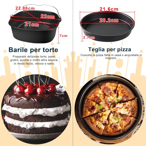 YINGRACE 22cm Accessori Friggitrice Ad Aria 12 Pezzi, Per Friggitrice Ad Aria XXL Come COSORI 5,5L, Cecotec 6L, Moulinex 6,5L, Proscenic T22 5L, T21 5,5L Air Fryer