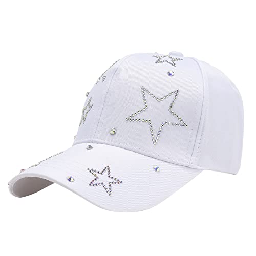 Yinguo Elegante cappello di paglia da donna alla moda estiva da spiaggia regolabile in cotone lavabile berretto da baseball cappello da sole cappello all'aperto, bianco, Taglia unica