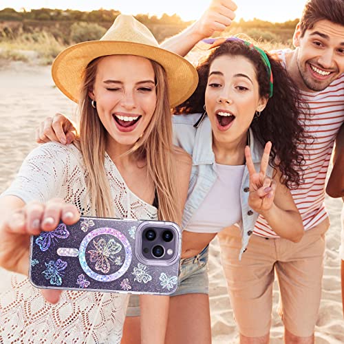 YINLAI Cover per iPhone 14 Pro Max Trasparente Glitter Farfalla con Magnetico iPhone 14 Pro Max con Antiurto con TPU Leggero e Sottile Custodia per iPhone 14 Pro Max 6.7