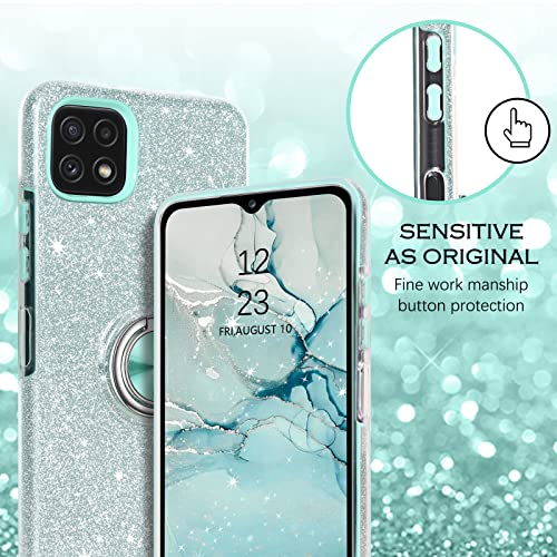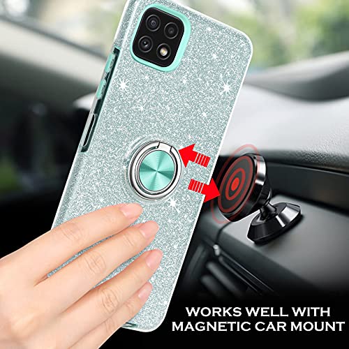 YINLAI Samsung Galaxy A22 5G Custodia con glitter per Samsung A22 con anello a 360 gradi, supporto magnetico per auto, resistente agli urti, custodia protettiva per Samsung A22 5G, argento menta