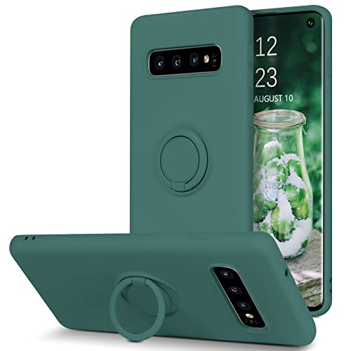 YINLAI Samsung Galaxy S10, custodia in silicone con anello, custodia per Samsung S10, morbida e antiscivolo, antigraffio, in silicone di alta qualità, per Samsung S10, verde scuro