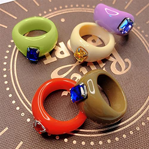YINLANG Anelli in Resina, 5 Pezzi Anelli grossi in Acrilico Vintage Anello in Resina colorato Anello con Diamanti Anello in plastica Trasparente Carino Anello con Gemme quadrate alla Moda
