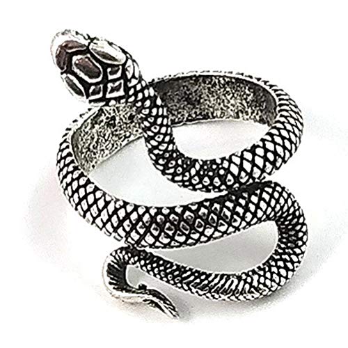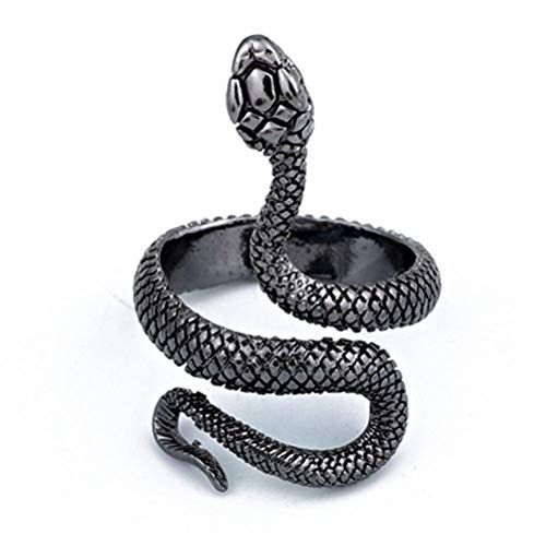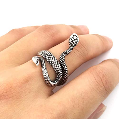 YINLANG Anello, 2 Pezzi Anelli Modellanti Serpente Apertura Anello da Dito Regolabile Anello Unisex Vintage Avvolgente in Lega Aperto Serpente per Uomo Donna Argento + Nero