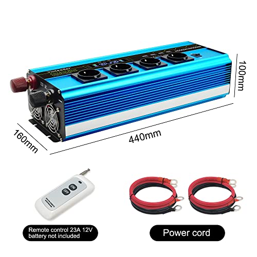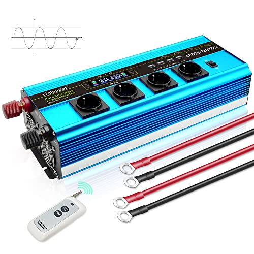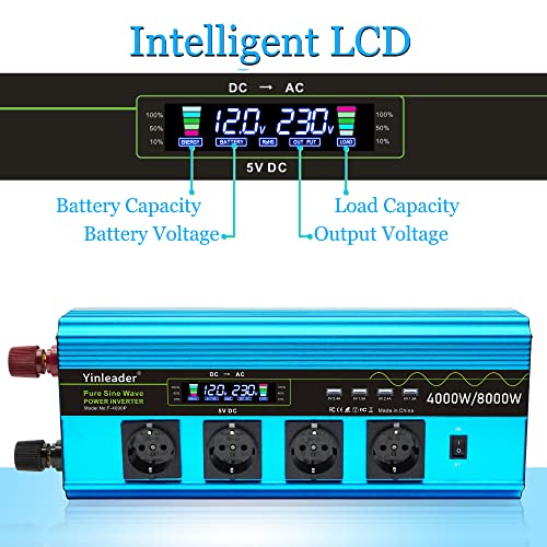 Yinleader Inverter 12V 230V 4000W / 8000W convertitore di tensione ad onda sinusoidale pura | 4 prese e porta USB | 10m telecomando wireless.