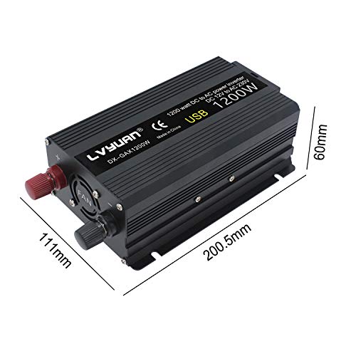 Yinleader Power Inverter 600W /1200W 12v 220v, Power Inverter DC 12V AC 230V Invertitore di Corrente con 2 Porte USB 2.4A, Trasformatore per Auto Camper tablet phone fan Computer mini TV