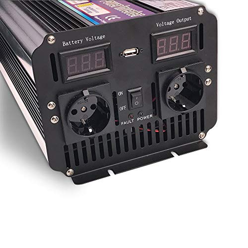 Potenza di uscita continua: 3000 W. Potenza di picco: 6000 W. Onda sinusoidale modificata da 12 V a 230 V. È un inverter molto economico per carichi resistivi. Non consigliato per l'utilizzo di carichi induttivi come forni a microonde, aspirapolvere, macchine da caffè a capsule, pompe dell'acqua, ecc.