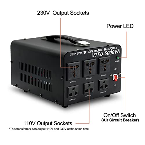 Yinleader Trasformatore di tensione da 5000 VA a anima ad anello, passo up/step down Converter, convertitore di tensione da 5000 W, 110 V a 230 V/230 a 110 V