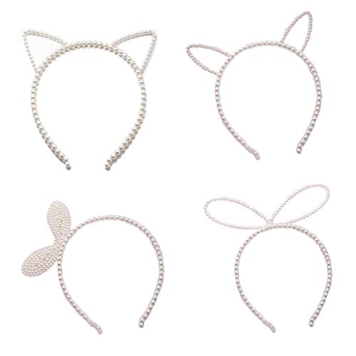 Elegante cerchietto per capelli, con perle finte, con perline incavate verso l'esterno, orecchie di coniglio/gatto, con design a fiocco sulla parte superiore.