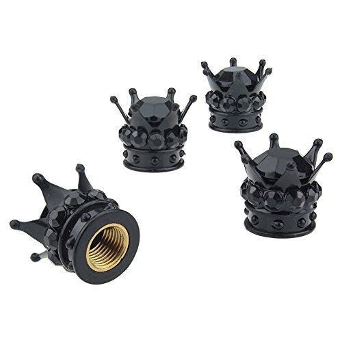YINUO 4 Pezzi Cappucci delle Valvole Universale Chrome Bling Bling Diamante Nera Corona Decoration di Pneumatici Ruota per Auto Veicolo (Nero)