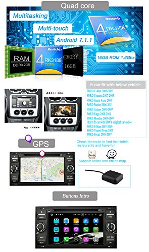 YINUO 7 Pollici Android 7.1.1 Nougat 2GB RAM 2 Din In Dash Quad Core Autoradio Schermo di Tocco Lettore DVD Navigatore GPS Con Bluetooth Supporto DAB/ Control Del Volante Bluetooth/ AV-IN/ 1080p Per FORD C-Max/ Connect/ Fiesta/ Fusion/ Galaxy/ Kuga/ S-Max/ Transit/ Focus/ Mondeo Nero (Con Fotocamera Posteriore 1)