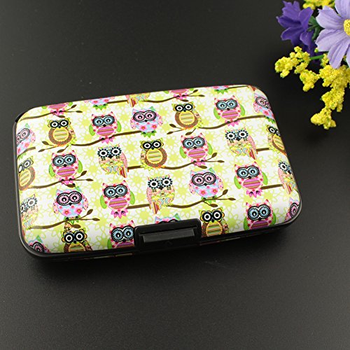 YINUO Porta biglietti da visita Portafoglio Caso RFID Blocco Porta Carte di Credito/ identità/ Carte Bancarie (gufi colorati)