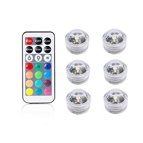 Yinyimei Lampada Acquario Mini RGB LED Light Light Bulb Button Battery Round Bulb Lampadina Subacquea con Telecomando Lampade Impermeabili Lampade sommergibili (Emitting Color: 1 Remote 6 Light)