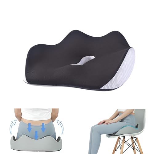 YIOUMLY Cuscino Sedile Ortopedico Schiuma a Memoria, Cuscino Ergonomico Sedia Ufficio Realizzato, Allevia il Dolore Della e Coccige Sciatica, Maggiore Comfort del Sedile, per Sedia da Ufficio (Nero)