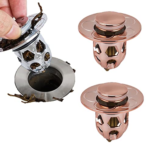 YiphLerx [2 Pack] Universal Washbasin Water Head Leaking Stopper, Stainless Steel Bounce Core Push-Type Converter for Sink (Rose Gold)