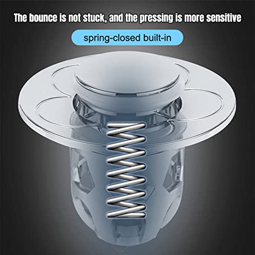 [DRAINED QUICKLY WITH ONE CLICK] - The sink drain plug has a beautiful bullet core thrust shape. Good rebound strength, quickly seal and drain water with a single press. Very convenient and fast. Structured with a thickened stepped silica-gel gasket, prevent the sewer from odor, so you can enjoy the fresh air at home.