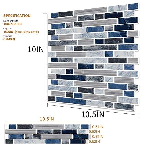 Yipscazo Piastrelle per paraschizzi per cucina, cucina, piastrelle in vinile blu (10 fogli 25,4 x 25,4 cm)