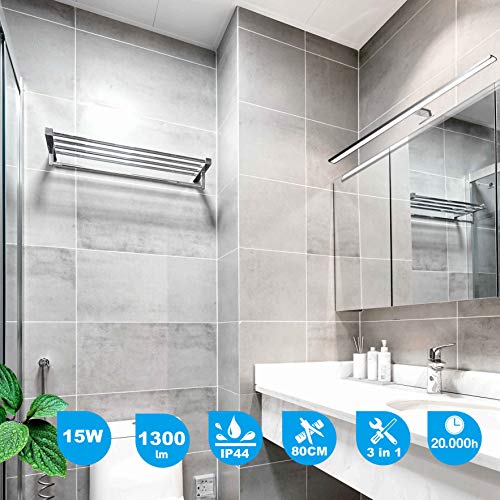 YIQAN 60 cm luce a specchio a led 4000 k specchio a led con illuminazione 13 W luce a morsetto illuminazione lampada da bagno lampada da bagno IP44 illuminazione a specchio, neturalwhite