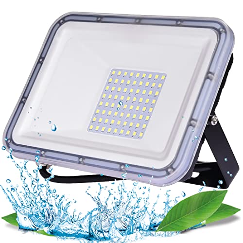 YIQIBRO Faretto LED da Esterno 50W, IP67 Impermeabile Ultra Sottile Faretti LED Esterno, 5000LM 6500K Bianca Fredda Faro LED Esterno per Giardino, Cortile, Garage, Parcheggio, Magazzino